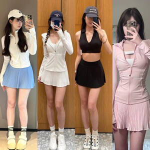 lu 同じスタイルの二重層露出防止ポケットプリーツテニススカートミニスカートアウトドアスポーツとレジャー多用途ヨガスカート