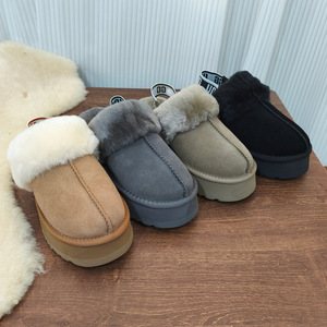冬の新しいスタイルのゴムバンドウール靴口ホームワンラインスリッパファッショナブルなカジュアルアウターウェア厚底スリッポンシューズ