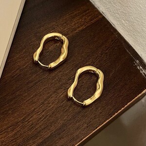 金属製の光沢のある不規則な幾何学的なイヤリング、ニッチなデザイン、個性、多用途、ハイエンド、気質、イヤリング、ジュエリー、ライトラグジュアリー