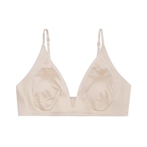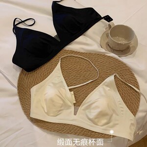 非磁性 Kbra ミルクサテン フレンチディープ V ネック下着 レディース スパゲッティストラップ シームレス 三角カップ 貧乳 ノンワイヤーリングブラジャー