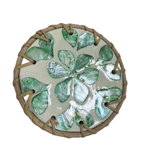 ラタンシェルコースター-グリーンハートフラワー