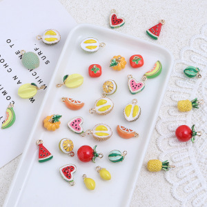 合金オイルドリップシミュレーション三次元スイカパイナップルドリアンマンゴーフルーツペンダント DIY 手作りジュエリーペンダントアクセサリー
