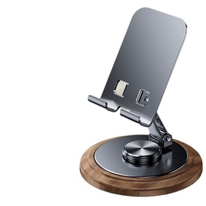 新製品ウォールナットオリジナル無垢材携帯電話ホルダー 360 ° 回転デスクトップレイジーメタル回転タブレットスタンドベース