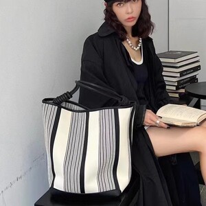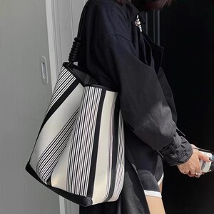ストライプの色の大容量の肩のバケツの包みの女性の2025新型のファッションの百合のトートはわきの下の通勤の大きい包みを包みます。