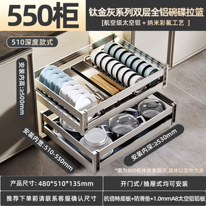 アルミ合金キャビネットプルバスケット引き出し式ボウルバスケット食器バスケット食器収納ラック2層同じ高さ