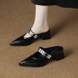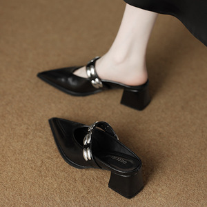 6001-8 新しい包頭ハーフスリッパ女性の夏のアウターウェアライト高級気質ハイヒール多用途ポインテッドトゥサンダル