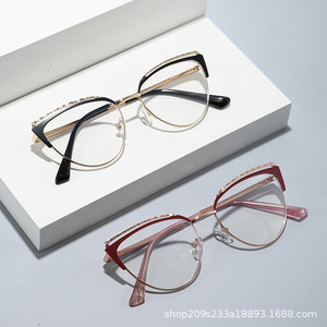 ヨーロッパとアメリカの新しいキャットアイメガネフレームファッショナブルなメタルフラットミラー快適なインクロスボーダー抗青色光メガネバッチ