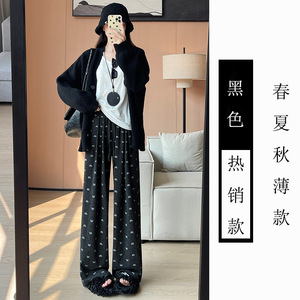 大きいサイズ 150kg グレー蝶結びもち米パンツ女性の春夏薄いドレープストレートレッグ怠惰なカジュアルワイドレッグパンツ