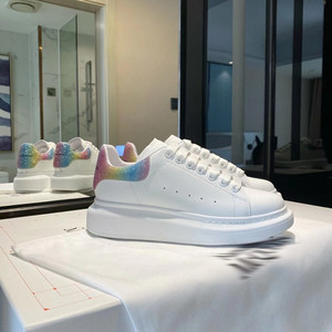 ピュアオリジナルマックイーンの男性用と女性用の白い靴、カップル向けの高さを高める厚底スニーカー、多用途の同じスタイルのカジュアルシューズ