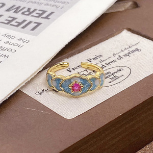 新中国式中古の個性的なレトロなエナメルの油はジルコンの開口指輪を入れます。
