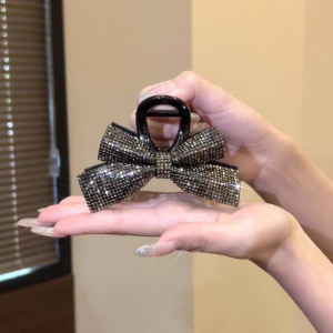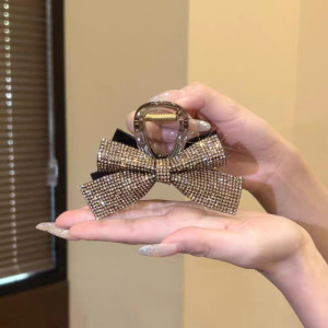 スターライトスパークリングリボン大型クリップ女性のための 2025 新しい後頭部ヘアアクセサリーラインストーンヘアピンサメクリップ