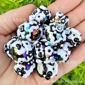 16 ミリメートル黒と白の手描きビーズ完成オイルドリップ混合アクリル diy 携帯電話チェーン車吊りペンアクセサリー