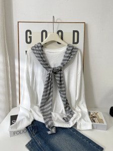 韓国東大門新作おしゃれ薄手長袖日焼け止めTシャツトップス+ストライプニットショール2点セット5955