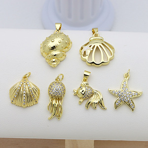 クロスボーダーヨーロッパとアメリカの銅メッキ 18K ゴールド象嵌ジルコン海洋要素ヒトデ巻貝ヒトデ金魚ネックレスペンダントアクセサリー
