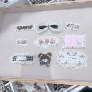 スポット漫画かわいいアルファベットボタン布ラベルレースメッシュ刺繍布ステッカー diy 子供服アクセサリー