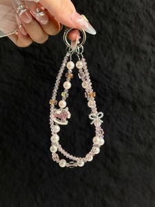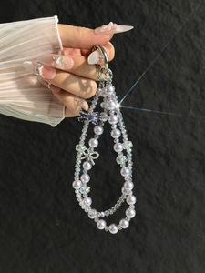 新しいライト高級ダイヤモンドリボンダブルチェーン携帯電話チェーンイン風水クリスタルパールビーズショート携帯電話ストラップ女性のための