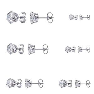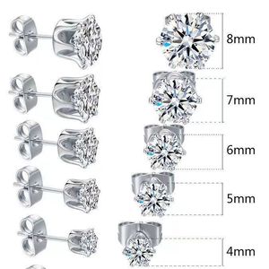 跨境货源厂家直销六爪圆形锆石耳钉小耳钉耳饰钛钢耳骨钉女流行