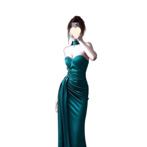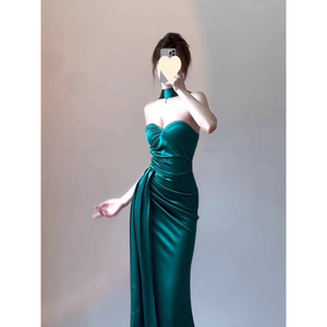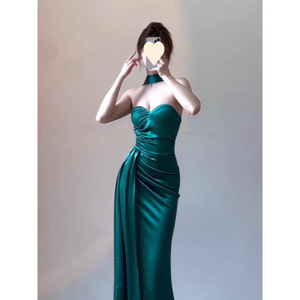 誕生日ドレス、高級イブニングドレス、高級軽い高級感、ニッチな気質、セレブのサテンチューブトップホルターネックドレス