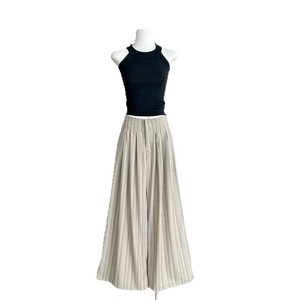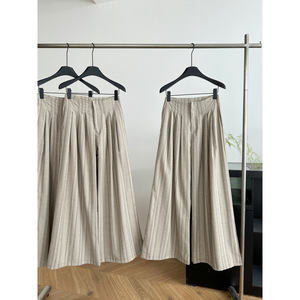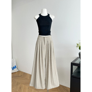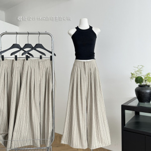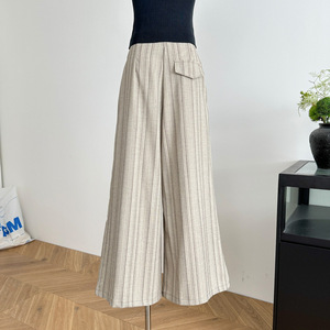 通勤ストライプワイドレッグパンツ夏の新しいプリーツデザインカジュアルで多用途な女性用ストレートパンツ