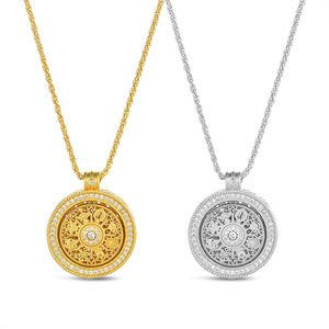 XL367-ダイヤモンドがちりばめられたシルバー八宝コンパス