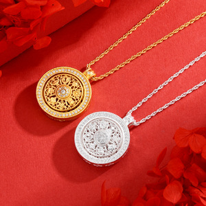 回転可能なレトロシルバーダイヤモンド八宝コンパスペンダントネックレス女性用銅金メッキ古代中空コンパスアクセサリー