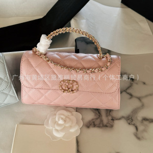 25春夏スモールフレグランススタイル23pライチ牛革中空ハンドルケリーレザーチェーンダイヤモンドチェーンショルダークロスボディバッグ