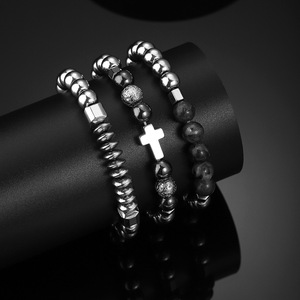 Amazon クロスボーダーメタリックブラック胆石ブレスレットメンズシンプルクロス多層弾性タイガーストーンビーズブレスレット