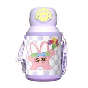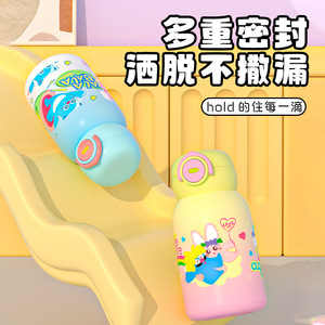 漫画かわいい子供用魔法瓶カップ学校ポータブルクロスボディウォーターカップ 316 ステンレス鋼学生ダブルストローカップ