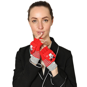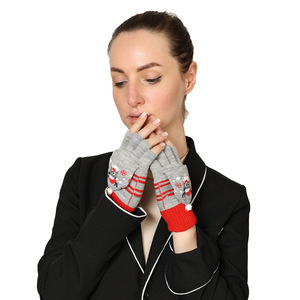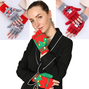 クリスマス手袋 秋冬 暖かい ハーフフィンガー フリップ クリスマス ギフト ジャガード手袋 アクリル手袋 書き込み兼用