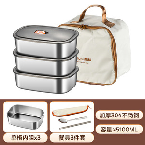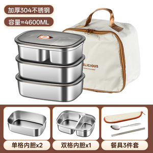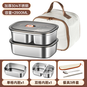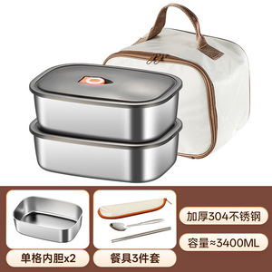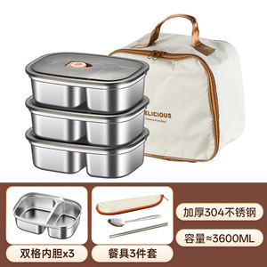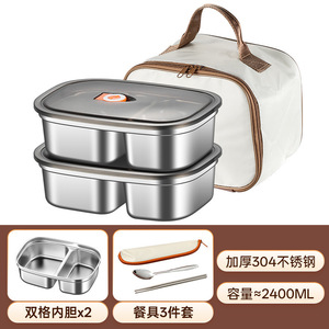 【抗菌304スチール】ダブルコンパートメントとシングルコンパートメント+食器付き保温バッグ