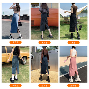 女性のためのハイウエストスリットデニムスカート 2025 新しい夏の小さな A ラインスカートレトロヒップカバーロングスカート