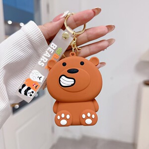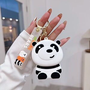 漫画パンダヘッドフォンバッグ小銭入れキーホルダー女性クリエイティブカエルコイン収納袋車のバッグキーチェーン