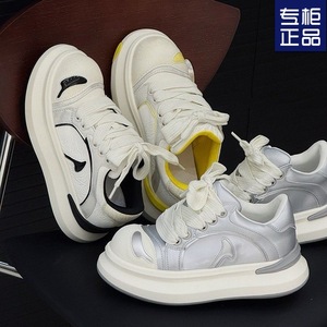 男女兼用のスターの同じスタイルのスマイリーフェイスの大きな頭の靴、秋の厚底の高さを高め、衝撃吸収のキャンバスシューズ、カジュアルなカップルシューズ、女性用シューズ