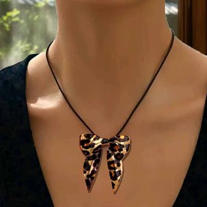 クロスボーダーヨーロッパとアメリカのファッション個性多用途クラシックヒョウ柄リボンペンダントネックレスイヤリングセット