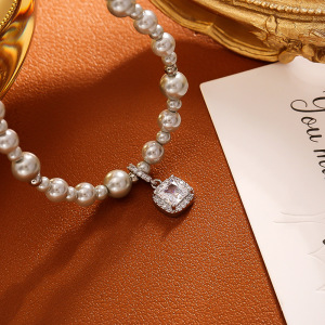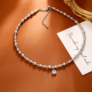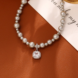 ファッショナブルなシュガーキューブグレーパールネックレス、ハイエンド、エレガントでスタイリッシュな鎖骨チェーン、シンプルで絶妙なハイエンドの雰囲気チェーン