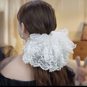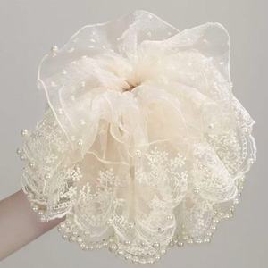 スーパーフェアリー大型4層パールレースヘアゴム、多用途ポニーテールヘアロープ、ゴムバンドヘアロープ、フラワーヘアアクセサリー