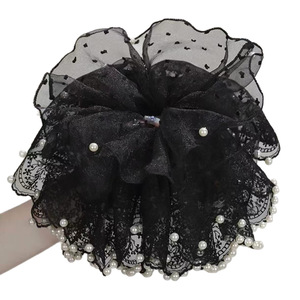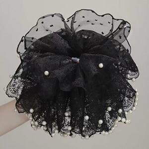 特大〜黒レースパールヘアゴム