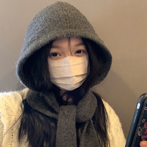 センスのある帽子、大きな頭囲の帽子、女性用ラファハット、女性用秋冬新作ニットフード付きスカーフ、オールインワンの暖かさと耳の保護