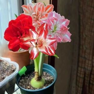 アマリリスは同一年に開花し、八重咲きで耐寒性の鉢植えで、屋内バルコニーでも四季咲き、AliExpressの工場直販で越境販売されています。