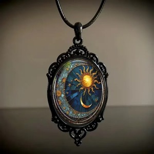 ホット販売クロスボーダーレトロ黄色トンボパターンオーバルガラス合金ペンダントネックレス卸売ヨーロッパとアメリカのジュエリー