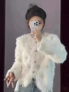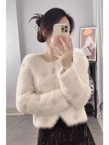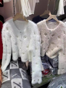 クロスボーダー小香風ショートミンクベルベットダイヤモンドカーディガン秋冬新作ビーズセーターセーターレディースジャケット