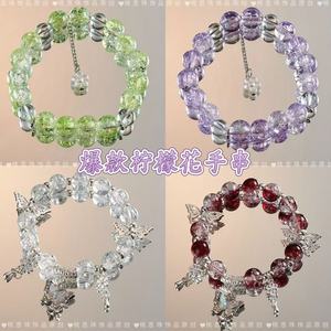 売れ筋の卸売人気のブロークンビーズレモンフラワーブレスレット、甘い女性ニッチガラスブレスレット、見栄えの良いカップルへの親友へのギフトとして