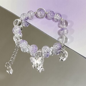 パープルエクスプローシブパールバタフライラブフラワーブレスレット