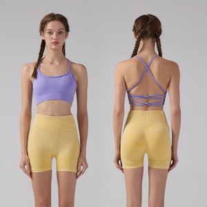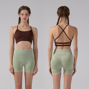 クロスバックスポーツブラヨガウェアスーツ女性用高強度オールインワンスポーツベストヨガショーツヒップリフティング