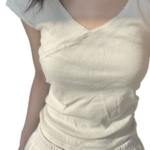 Pure Desire バレエスタイルホワイト V ネックショルダー半袖 Tシャツ女性のための夏 2025 新しいスリムフィットホットガールショートトップ