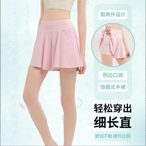 イゼル 速乾性 通気性 露出防止 スポーツ プリーツ ショート パンツ スカート ラージ ポケット ハイウエスト フェザーテニス ヨガ フィットネス