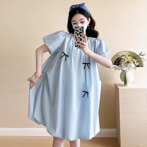 マタニティウェア、夏ドレス、ゆったりとしたデザイン、つぼみリボンドレス、小柄な人向けの甘い半袖スカート
