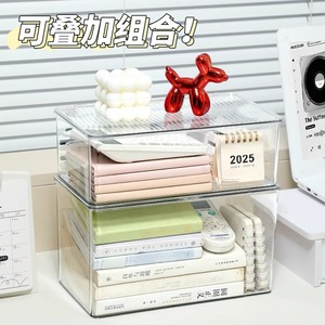 アクリル収納ボックスデスクトップ透明蓋付き整理ボックス大容量防塵オフィスデスク文具収納ボックス
