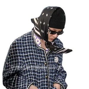蝶結び柄シルクスカーフ90cm斜め織りスカーフ クラシックレター柄大判スカーフ レディースシルクショール ヘッドスカーフ 多用途