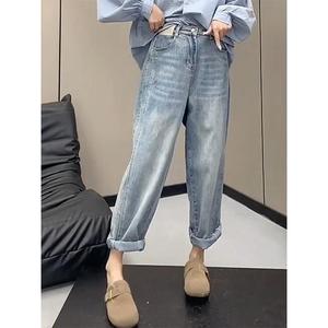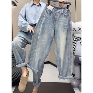 レトロハイウエストストレッチハーレムダッドジーンズ女性の夏の洋ナシ体型痩身大きいサイズ9点ストレートパンツ